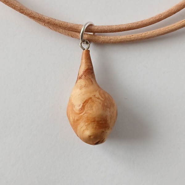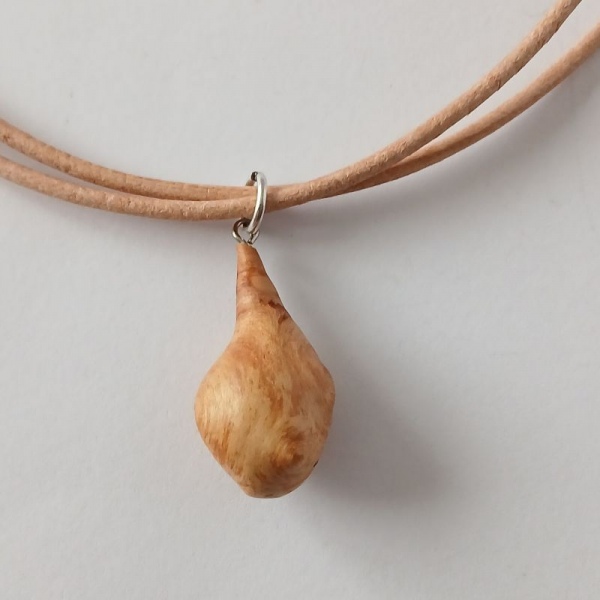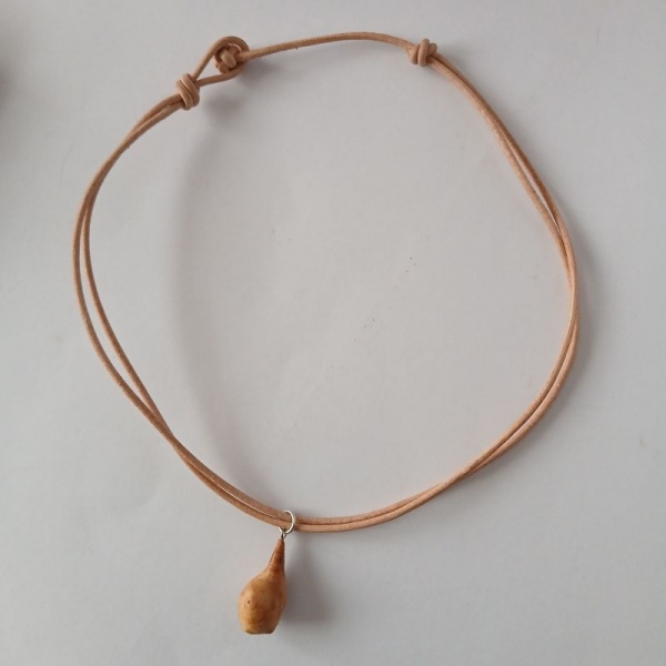 Halskette Baumperle Zedernholz, Lederband natur 42 cm