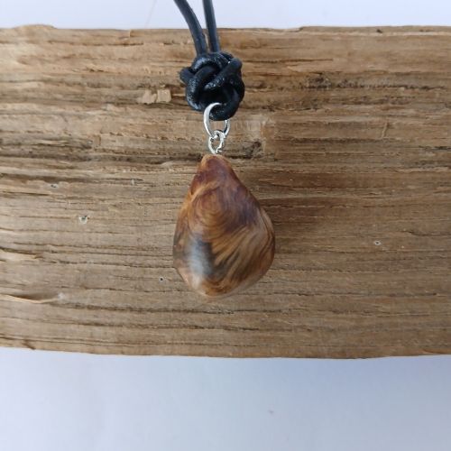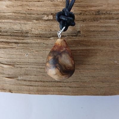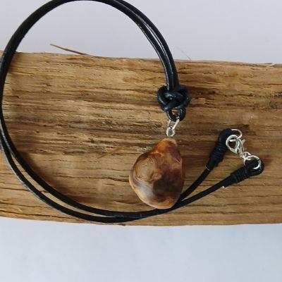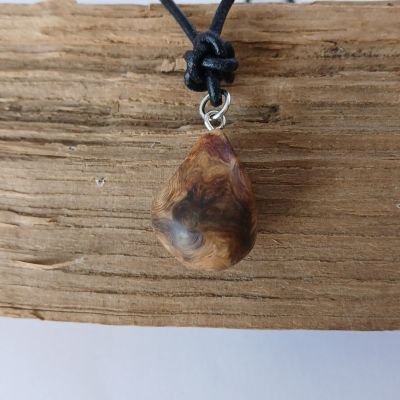 Halskette Baumperle Eichenholz, Lederband schwarz 46 cm, Baumperle BxH ca. 2,5x1,5 cm