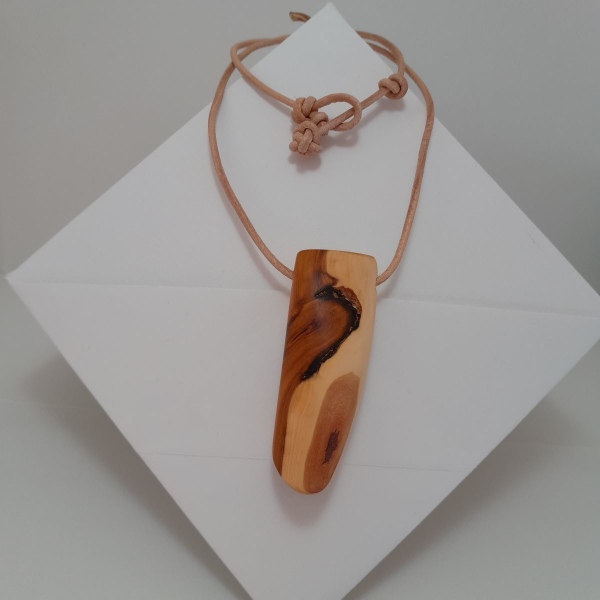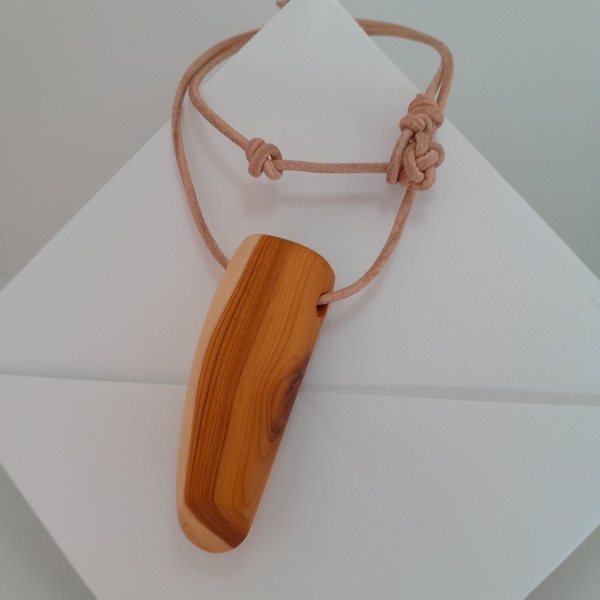 Halskette aus Sihlwald-Eibenholz, Lederband hellbraun 46 cm